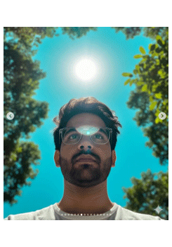 use my image with accurate face 100%) Ultra-realistic, cinematic portrait of a young man looking up, his face softly illuminated by a dazzling, overexposed sun directly above his head. The background is an intense, vivid sky, a brilliant turquoise-blue, framed by the lush, dark green and bright lime-green foliage of an overhead tree canopy. The perspective is a low-angle shot (worm’s-eye view)), making the man appear in the foreground and the sun/sky the central element. Strong lens flare