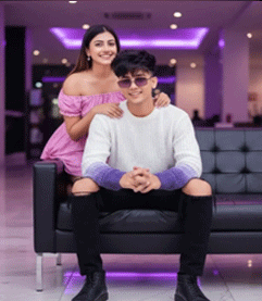 His look is confident and effortlessly stylish. The girl stands beside him with a natural soft smile, wearing the same outfit as before, and the boy's other hand is gently around her back. Both have 100% same face match as the reference image, and their outfits and pose remain unchanged. Lighting is soft, cinematic, and realistic, highlighting their skin tones and reflections clearly.